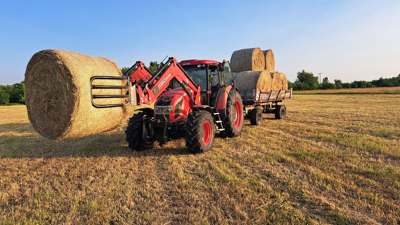 Zber balíkov sena na zimné kŕmenie dobytka v CHVÚ Žitavský luh