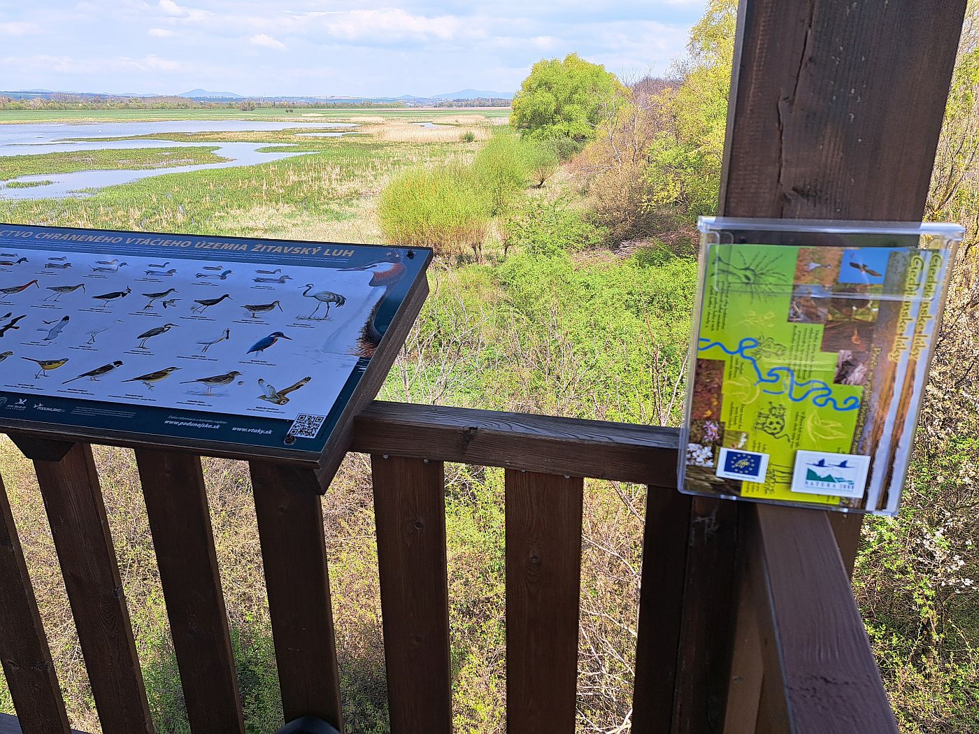 Informačná tabuľa a zásobník materiálov vo vyhliadkovej veži v CHVÚ Žitavský luh